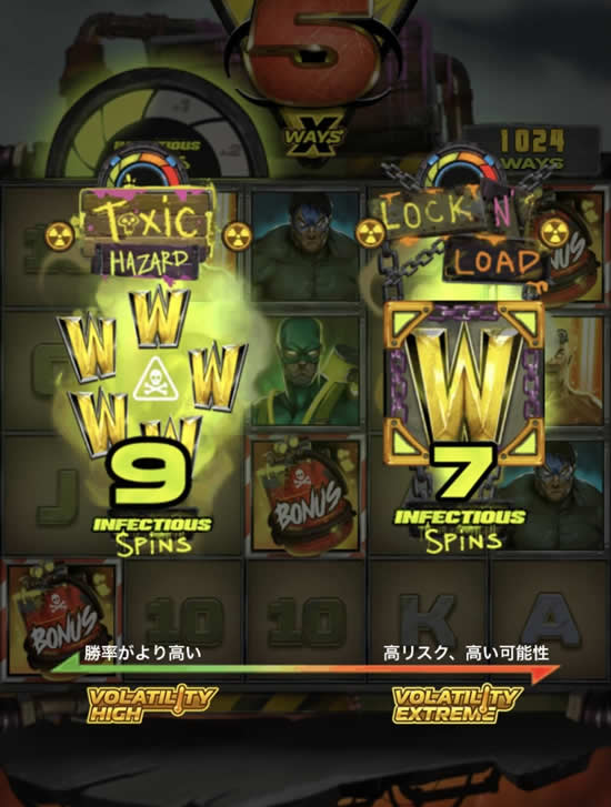 インフェクシャス 5 XWAYS (Infectious 5 xways) はアメコミ調のグラフィックと派手な演出が特徴のオンラインスロットです。独自のXWaysシステムによる演出も楽しく、また高配当の期待感も十分と言えます。初心者も熟練者も満足できるスロットと言えるでしょう。